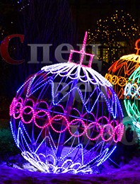 Главная » Новогоднее освещение » Новогодние украшения для города » Новогоднее украшение города. Световая фигура "Елочный шар". Сине-розовый