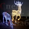 Сочетание теплого и холодного белого света создает удивительный эффект, подчеркивая красоту каждой фигуры и добавляя глубину всей композиции. Игра света и тени придает оленям объем и реалистичность, делая их похожими на настоящих обитателей зимнего леса.